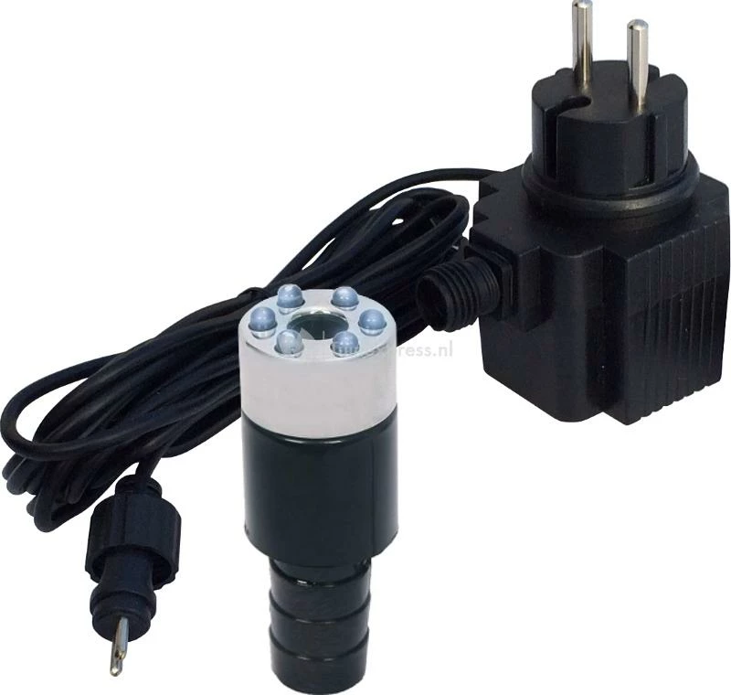 Speciaal LED-verlichtingsysteem voor waterornamenten van het merk Seliger, de Quellstar 600 led. Deze LED verlichting maakt gebruik van inductie technologie, waardoor u het LED-kopje in één handomdraai kunt verwisselen. Het waterornament hoeft dus niet meer afgebroken te worden om de LEDs te kunnen vervangen. Het waterornament verlichtingsset bestaat uit een transformator, basismodule en 1 ledkopje.