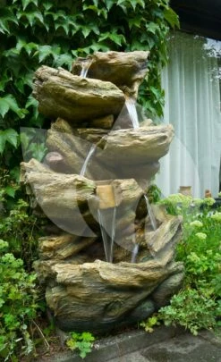 Een natuurgetrouw tafereel van boomstammen met stenen, een prachtige toevoeging aan uw tuin! Het waterornament is voorzien van ledverlichting waardoor het ook ’s avonds een absolute sfeervolle blikvanger zal zijn in uw tuin. Stromend water in de vrije natuur was de inspiratiebron voor het ontwerp van dit prachtige ornament.