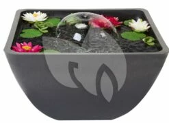 De boomstammen en stenen zijn prachtig nagemaakt uit polyresin. Dit mengsel van kunsthars met gemalen steen geeft een oersterk materiaal waardoor uw waterornament het gehele jaar door buiten kan blijven staan. Enkel in de vorstperiode dient u het waterreservoir te legen. Het waterornament wordt compleet geleverd, na installatie dient u enkel het reservoir van water te voorzien en u kunt direct genieten van het kabbelende water.