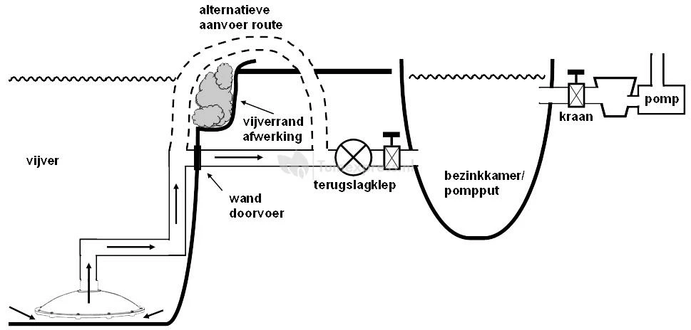 Deze bodemafvoer is de oplossing voor vijvers zonder bodemdrain die toch gebruik willen maken van bodemafzuiging. De reversed bottomdrain is een omgekeerde bodemdrain die als aanzuigschotel gebruikt wordt. De reversed drain is verzwaard zodat deze op zijn plaats blijft. Nu voorzien van een bodemplaat waardoor hij bijvoorbeeld niet aan de folie kan worden vastgezogen.