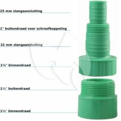- Materiaal pomphuis: PP (polypropeen) + Glass fill