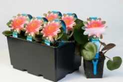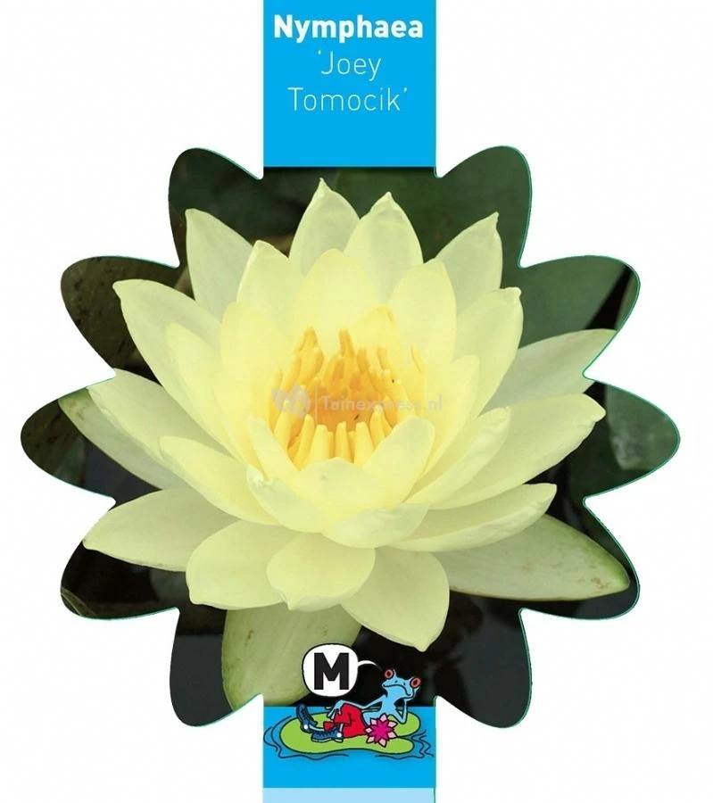 Met het grote blad van deze waterlelie, moeten de bloemen wel extra hun best doen om op te vallen. Dit doen ze door op steel 10cm boven het water uit te steken. Het zachte tot felgele bloemblad steekt prachtig af tegen het grote groene blad met paarse tekening. Deze waterlelie is een goede bloeier en één van de sterkste gele waterlelies die wij kennen. Verrijk uw vijver met deze zonnige koningin der waterplanten!