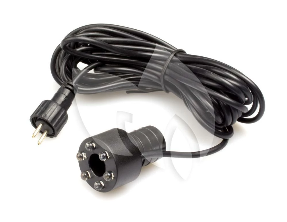 Warmwitte led krans voor waterornamenten, vijvers en andere waterpatijen. De lamp is voorzien van een 5 meter lange aansluitkabel. Aan de led kop zit een slangaansluitning van ¾“ (19 mm). Transformator is bij dit product niet inbegrepen.