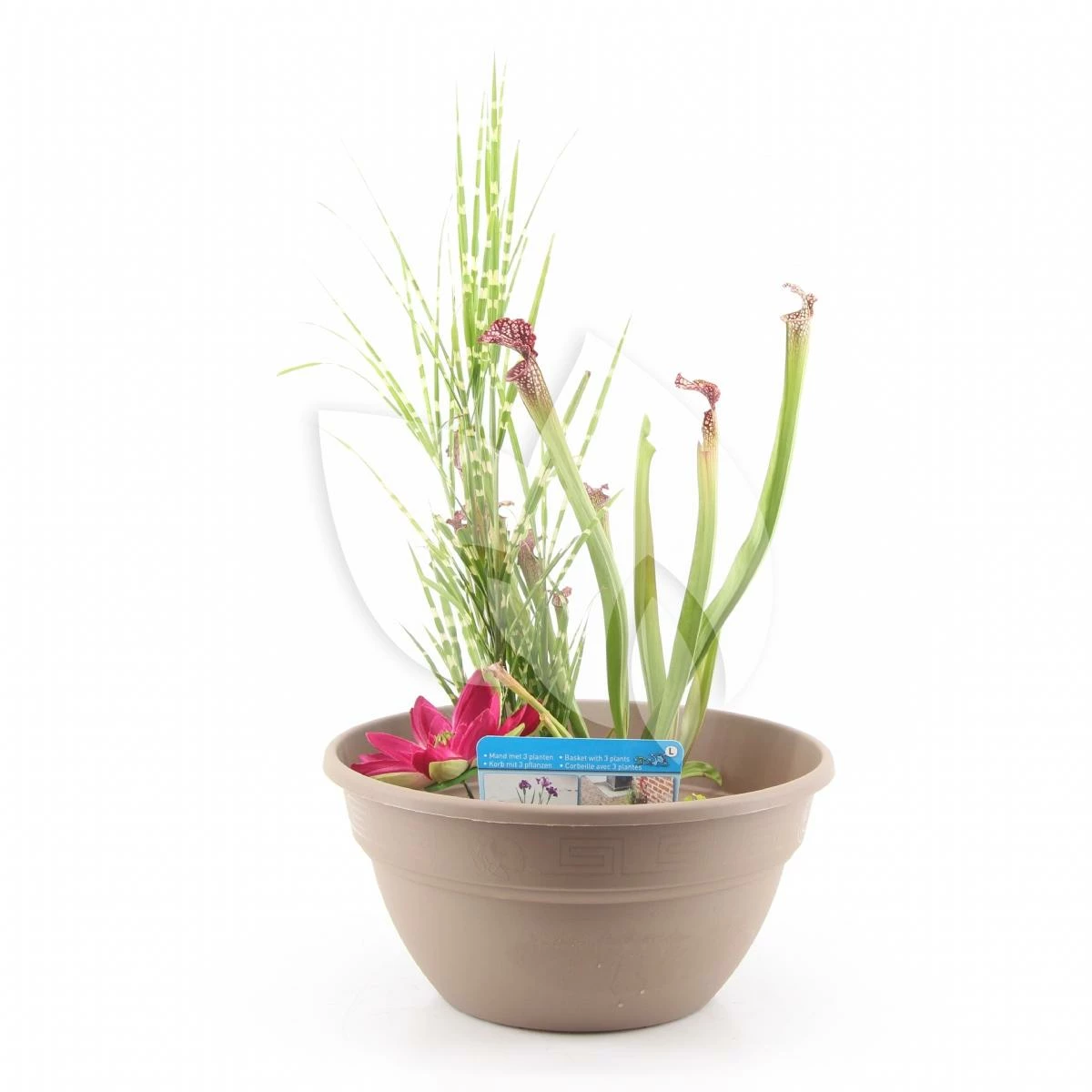 Met zijn neutrale taupe kleur is deze mini vijver geschikt voor ieder terras! De teil wordt geleverd inclusief vijvermand met daarin 3 waterplanten die vooraf geselecteerd zijn door de leverancier. Na ontvangst giet u leidingwater bij de waterplanten en u bent al klaar! Er komen geen vieze handen bij kijken, hoe simpel wilt u het hebben? Altijd al een waterpartij in uw tuin willen hebben maar beperkt door de ruimte? De mini vijver is de oplossing; in een hoek in de tuin of op tafel, die keuze ligt bij u!