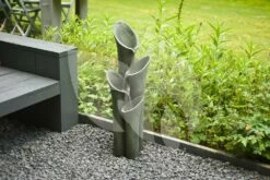 Polyresin is een mengsel van gemalen steen met kunsthars wat een oersterk product oplevert met de eigenschap geen water op te nemen. Hierdoor is het geschikt om het gehele jaar buiten te blijven staan. Omdat bevroren water uitzet is het wel belangrijk het reservoir te legen wanneer de vorstperiode zijn intrede doet. Met behulp van een meegeleverde pomp en aansluitmateriaal werkt dit waterornament in een mum van tijd.