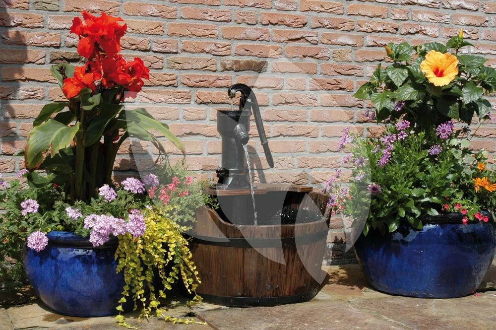 Het rustieke vat is vervaardigd uit hout en de zwengelpomp bovenop is gemaakt van gietijzer in een zwarte kleur. Newcastle is een complete set bestaande uit een pomp, aansluitmateriaal en een bassin. Dankzij de set is het aansluiten van het waterornament zeer eenvoudig waardoor u nagenoeg direct kunt genieten van deze prachtige rustieke waterpomp ornament.