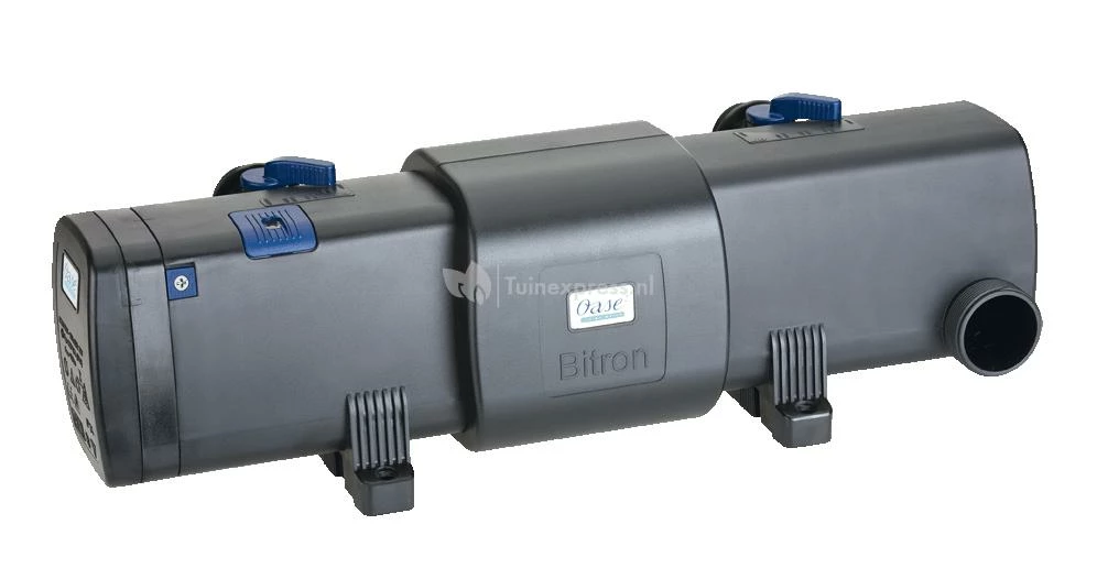 Geniet weer van helder en gezond vijverwater in uw prachtige tuinvijver met de OASE Bitron C! De Bitron C is een UVC-voorzuiveringsapparaat met gepatenteerde zelfreiniging en bypass-techniek. De geïntegreerde automatische reinigingsrotor zorgt voor een permanente reiniging van de kwartsbuizen waardoor de UVC-bestraling altijd optimaal functioneert. Door de bypass-techniek wordt een grote doorstroomhoeveelheid gecombineerd met een optimale bestralingstijd. Een uiterst effectief UVC-filter tegen zweefalgen, ziektekiemen en bacteriën!