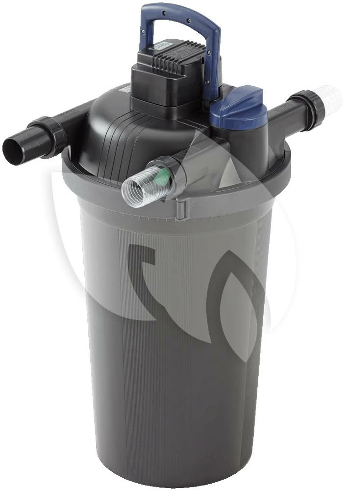 Met de FiltoClear is een nieuwe generatie drukfilters ontwikkeld die met betrekking tot filtereigenschappen en bedieningscomfort ongeëvenaard zijn. De FiltoClear 20000 drukfilter is dan ook een echt multitalent. Het drukfilter beschikt over twee unieke reinigingsfuncties die u eenvoudig door middel van de draaischakelaar op het filter kunt inschakelen. De stand ”filteren” zorgt ervoor dat zweefalgen en ziektekiemen door het UVC-voorzuiveringsapparaat worden verwijderd. Het water wordt vervolgens gezuiverd van schadelijke stoffen door de filterelementen. Met de stand ”reinigen” kunt u eenvoudig het drukfilter en de bijbehorende filterelementen reinigen zonder het filter te hoeven openen. De FiltoClear kunt u zowel boven de waterspiegel opstellen als in ingraven onder de waterspiegel. De door de filtervoedingspomp opgewekte werkdruk kan worden gebruikt om een fontein of een beek in werking te stellen.