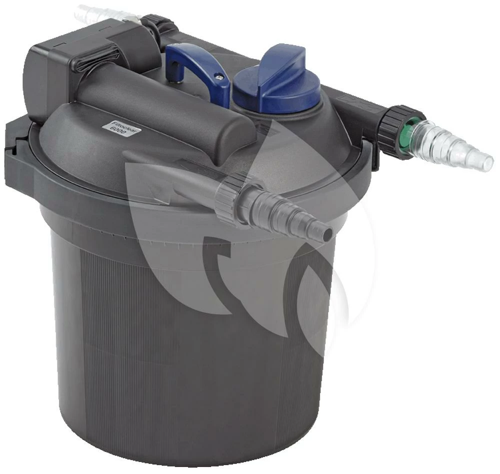 Met de FiltoClear is een nieuwe generatie drukfilters ontwikkeld die met betrekking tot filtereigenschappen en bedieningscomfort ongeëvenaard zijn. De FiltoClear drukfilter 6000 is dan ook een echt multitalent. Het drukfilter beschikt over twee unieke reinigingsfuncties die u eenvoudig door middel van de draaischakelaar op het filter kunt inschakelen. De stand ”filteren” zorgt ervoor dat zweefalgen en ziektekiemen door het UVC-voorzuiveringsapparaat worden verwijderd. Het water wordt vervolgens gezuiverd van schadelijke stoffen door de filterelementen. Met de stand ”reinigen” kunt u eenvoudig het drukfilter en de bijbehorende filterelementen reinigen zonder het filter te hoeven openen. De FiltoClear 6000 kunt u zowel boven de waterspiegel opstellen als in ingraven onder de waterspiegel. De door de filtervoedingspomp opgewekte werkdruk kan worden gebruikt om een fontein of een beek in werking te stellen.