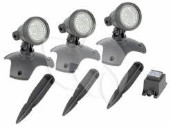 - Inclusief: 3 schijnwerpers, trafo 12 V, rubberen slangleiding, 3 grondpennen