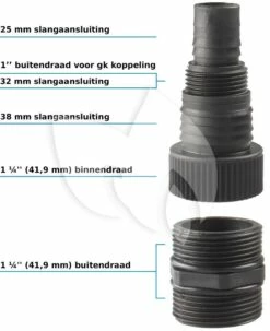 - Aansluiting pompafvoer: 1 ¼” (41,9 mm)