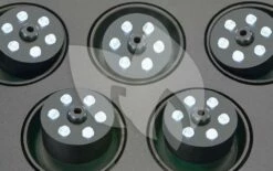 Compacte fontein – met grooteffect! De compacte, drijvende fontein brengt leven op het terras en in de tuin – ook als er maar weinig ruimte is. De vijf sproeikoppen incl. LED lichtring kunnen individueel ingesteld worden en geven verschillende waterfiguren weer. De vijf geïntegreerde pompen en de LED-lampen functioneren met behulp van de veilige, stroombesparende 12V veiligheidslaagspanning. De fontein kan zowel drijvend ingezet als ook met behulp van bevestigings-ogen op de bodem geplaatst worden. Door het OASE »Plug’n‘Spray concept« is de installatie en ingebruikname bijzonder snel en eenvoudig.