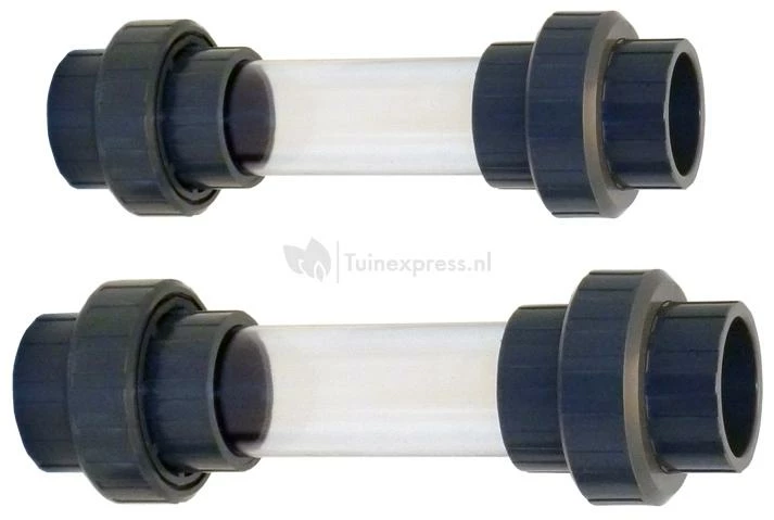 Hoogwaardig zichtglas voorzien van twee 3-delige koppelingen. Met deze 3-delige koppeling kunt u de verbinding altijd losmaken indien dit nodig is.