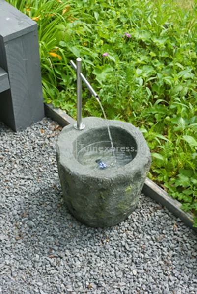 Polyresin is gemalen steen vermengd met kunsthars waardoor het in een mal gegoten wordt en het zo natuurgetrouw mogelijk afgewerkt kan worden. Het heeft als eigenschap dat er geen vocht in kan dringen waardoor het geschikt is het gehele jaar buiten te laten staan. Let u er wel op dat u het reservoir leegt tijdens vorstperiodes. Dit waterornament is eenvoudig te plaatsen, u ontvangt een compleet pakket met bijpassende vijverpomp en aansluitmateriaal. Het waterornament beschikt over een geïntegreerd waterreservoir en is gemakkelijk aan te sluiten.