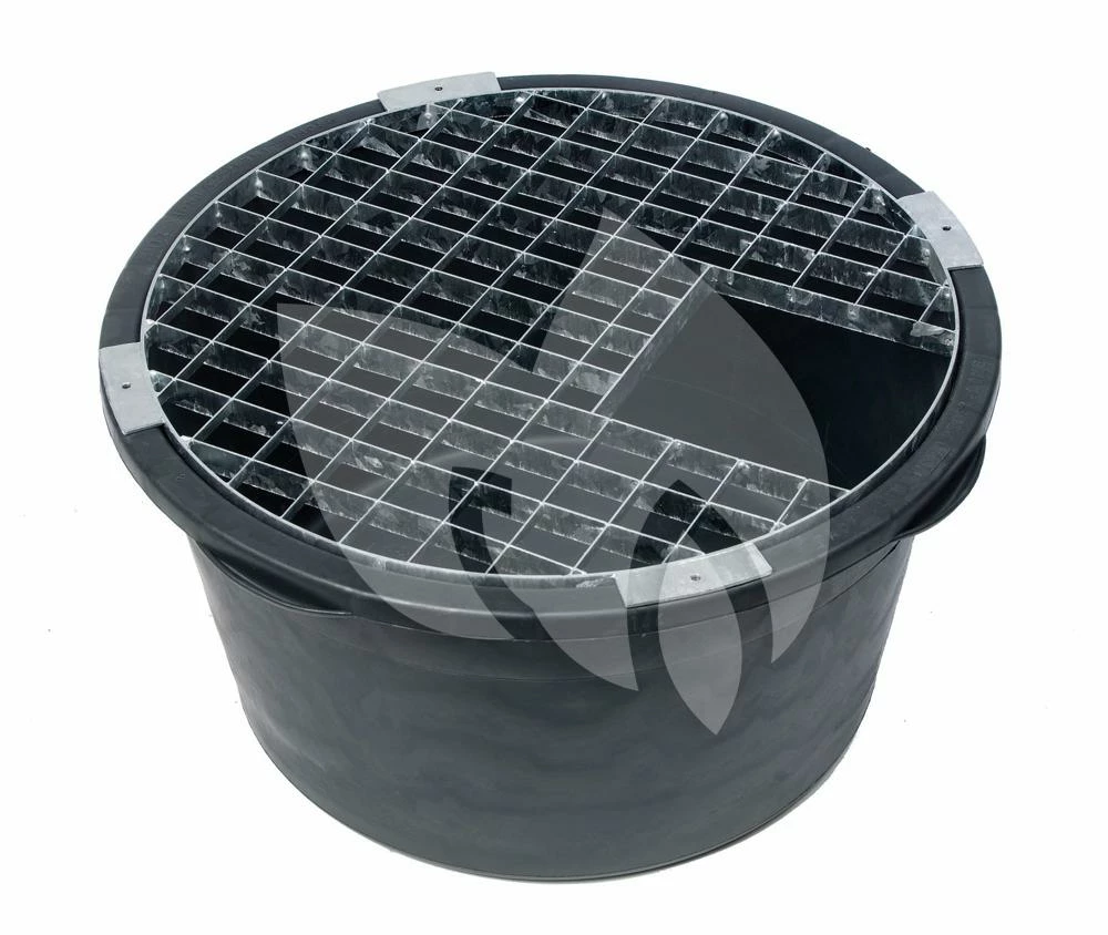 Het metalen afdekrooster is gemaakt van gegalvaniseerd staal in een ronde vorm. Met het juiste bassin komt het afdekrooster op gelijke hoogte te liggen met de rand en kan hij met speciale klemmen op de rand worden vastgezet. Bij een gelijkmatige belasting kan het rooster een hoog gewicht tot een maximum van 150 kg dragen. Dankzij de rasteropening van 5 x 5 cm kunnen de slangen van het decoratieve element naar iedere positie worden geleid en door middel van de service opening is de vijverpomp altijd bereikbaar voor eventuele onderhoud. Om de service opening te dichten is er een afzonderlijk inzetstuk beschikbaar (niet inbegrepen). Het afdekrooster is verkrijgbaar in verschillende diameters.