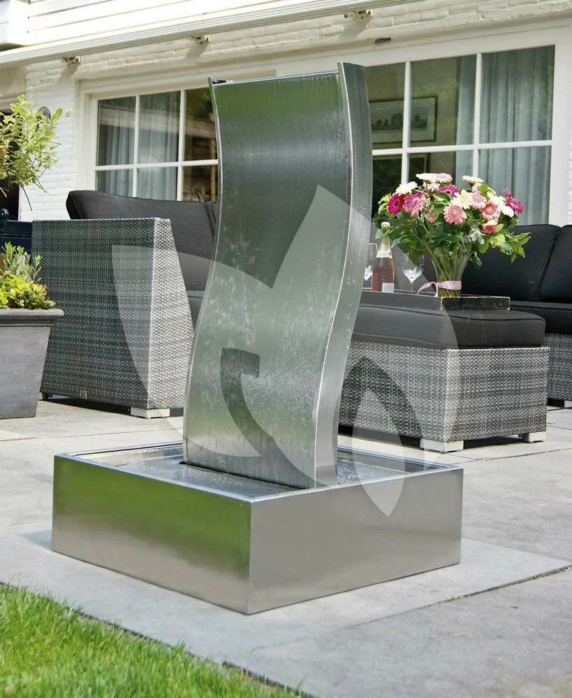 Waterornament Genova is een elegant vormgegeven ornament die wordt gekenmerkt door zijn moderne uitstraling, exclusiviteit en bijzonderheid! De golvende vorm zorgt in combinatie met stromend water constant voor nieuwe, levendige lichteffecten. De combinatie van hoogwaardige materialen, strakke vorm en het element water geeft deze complete set een fascinerende uitstraling in jouw tuin, terras of interieur!