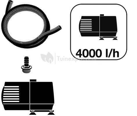 - Capaciteit pomp per uur: 4000 l/h