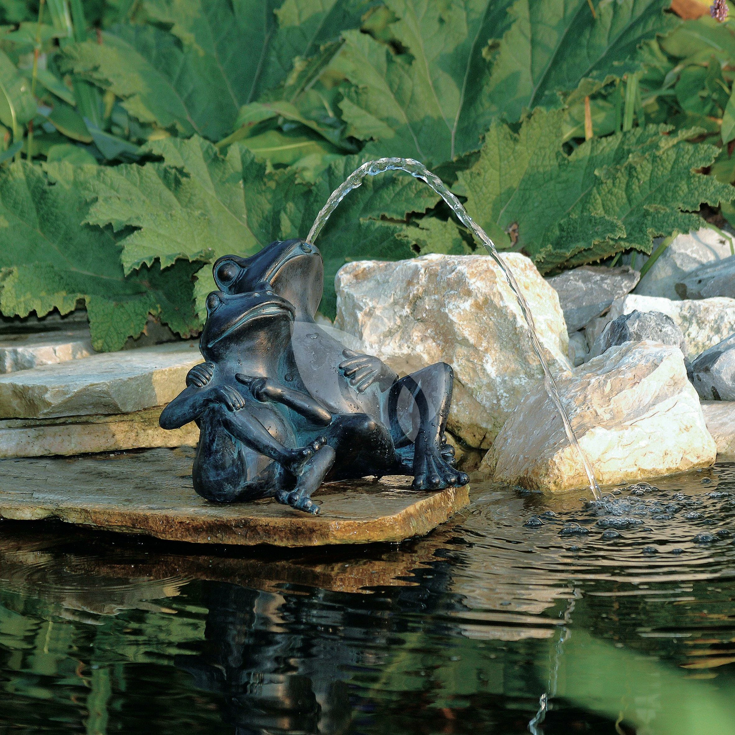 Het kikkers spuitfiguur is een leuke en speelse accessoire bij uw tuin. De twee kikkers staan leuk aan de rand van iedere vijver en brengen door het stromende water een speelse sfeer met zich mee. Door het spuitfiguur ontstaat er meer leven in de vijver en blijft het water constant in beweging. Het ornament is gemaakt van polyresin waardoor het spuitfiguur lange tijd mee zal gaan. Polyresin is een kunsthars welke bestand is tegen alle weersinvloeden. Door dit materiaal is het spuitfiguur licht van gewicht waardoor hij gemakkelijk geplaatst kan worden.