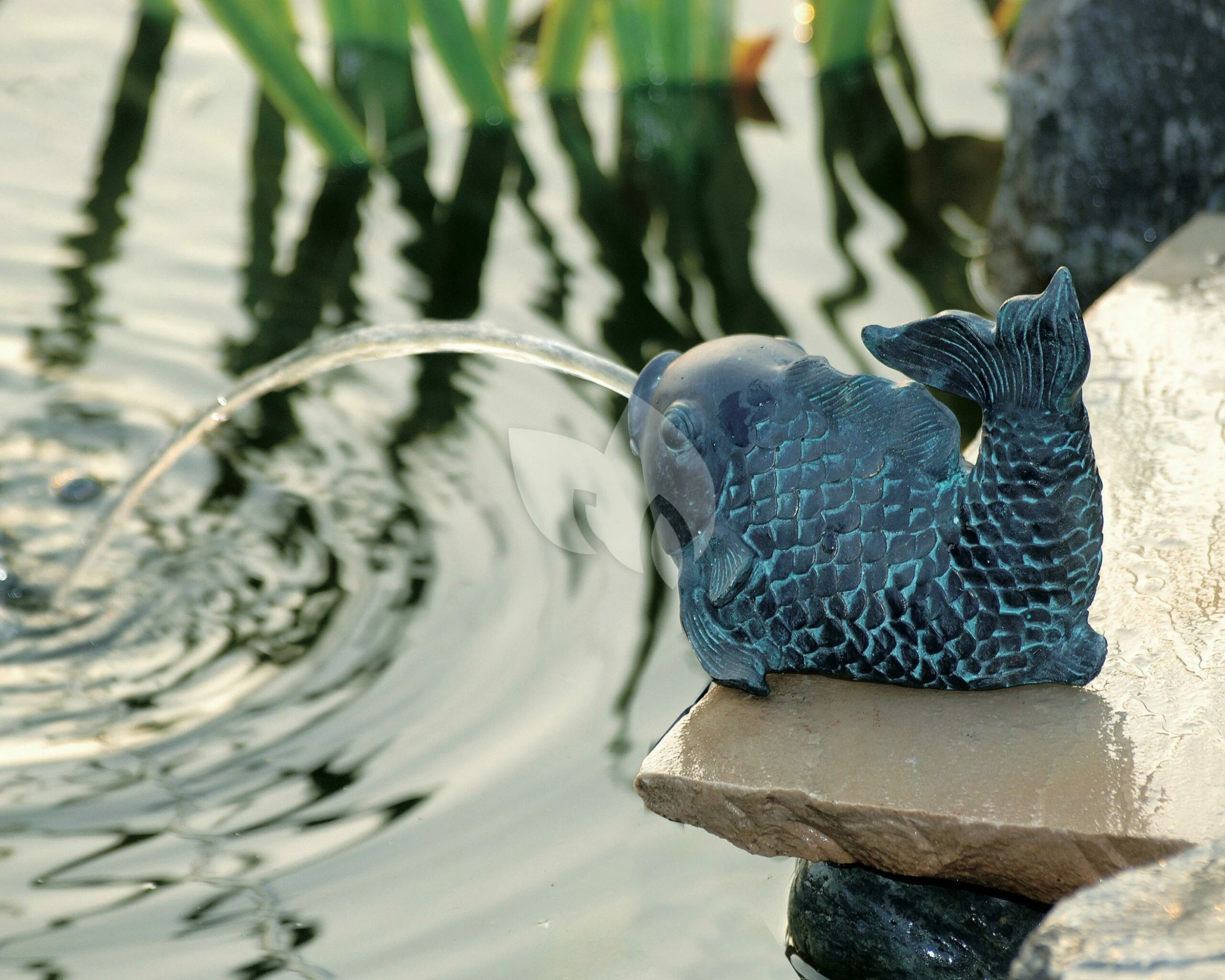 Een spuitfiguur in de vijver geeft een leuk, speels effect en zorgt er tevens voor dat het water in beweging blijft. De vis staat leuk aan de rand van de vijver en werkt als echte blikvanger. Het spuitfiguur is licht van gewicht waardoor hij gemakkelijk te plaatsen is, het spuitfiguur is gemaakt van polyresin. Polyresin is een kunsthars welke bestand is tegen alle weersomstandigheden.