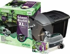 Kristalhelder en gezond water in uw grote vijver is onbetwistbaar met deze Giant Biofill XL set van Velda! Door de combinatie van de doorstroomfilter met UV-C unit, vijverpomp en luchtpomp bent u verzekerd van een gezond en ideaal leefmilieu voor uw vissen en vijverplanten.