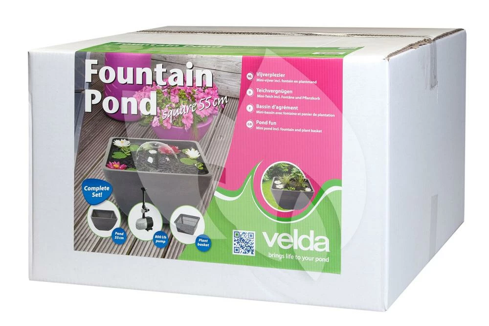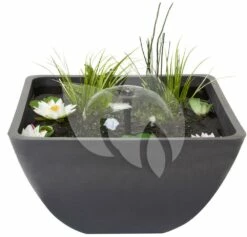 De Fountain Pond is gemaakt van licht materiaal, polystone, waardoor u de vijver moeiteloos kunt verplaatsen. De terrasvijver wordt geleverd met fonteinpomp en plantmand waarmee u de vijver kunt vullen. Een aanrader: moerasplanten maken de terrasvijver echt tot een sfeervol element in uw tuin of huis! Voor het houden van helder en algenvrij water zijn zuurstofplanten een goede optie. De terrasvijver is ook beschikbaar in een groter formaat en in een ronde uitvoering.