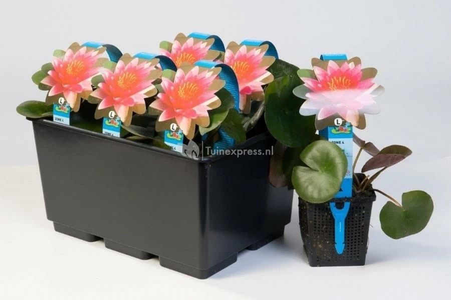 Niet de allerkleinste, maar nog zeker een dwergwaterlelie is deze soort met bloemen van 5 tot 7cm. Wanneer het blad opkomt is dit eerst paarsachtig, later verandert dit in een prachtig donkergroen. Deze compacte waterlelie die een wateroppervlakte van 50 á 75cm inneemt is een absolute aanrader voor de kleinere (terras)vijvers. Schrik niet wanneer de bloemen ’s ochtends nog niet open gaan, deze dwergwaterlelie neemt hier de tijd voor en opent pas aan het eind van de ochtend. Hierna kunt genieten van de prachtige sneeuwwitte bloemen.