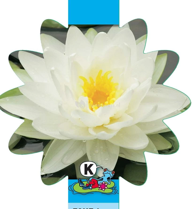 Deze witte waterlelie is een van de mooiste waterlelies die wij kennen. Het grote blad kleurt van rood naar groen naarmate de zomer start. Deze waterlelie is vooral geschikt voor middelgrote tot grote vijvers. Deze witte waterlelie bloeit met grote, stervormige bloemen van juni tot september. Het prachtige roomwit steekt mooi af bij het groene blad en het gele hart. Na de bloei zakken de zaden naar de bodem waarna de plant zich het volgende vijverseizoen weer ontwikkelt. Waterlelies houden van een zonnige plaats maar kunnen ook prima groeien bij halfschaduw. De ideale diepte voor de waterlelie is per soort verschillend. Deze witte waterlelie heeft graag een diepte van 30 tot 80cm. Waterlelies maken een droomplaatje van uw vijver.
